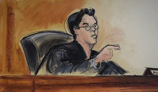 As the weeks-long trial nears its conclusion, the artists have been pulling long hours to complete four to five sketches a day, which they shoot off to wire services or news outlets on breaks. Cornell said she’ll email her drawings in the bathroom.